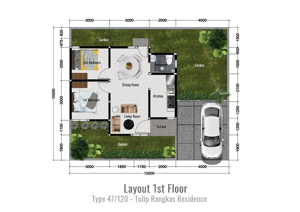 Tulip Rangkas Residence Tipe Gardenia merupakan tipe rumah 1 lantai yang dilengkapi dengan 2 kamar tidur, 1 kamar mandi, ruang keluarga, ruang makan, dapur, dan carport untuk 1 mobil. Tipe Orchid memiliki luas bangunan 45 meter persegi dan luas tanah 120 meter persegi, harga yang ditawarkan mulai dari IDR 479 jt.